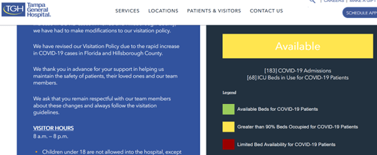 Tampa General : Hospital Bed Availability for COVID-19 Patients